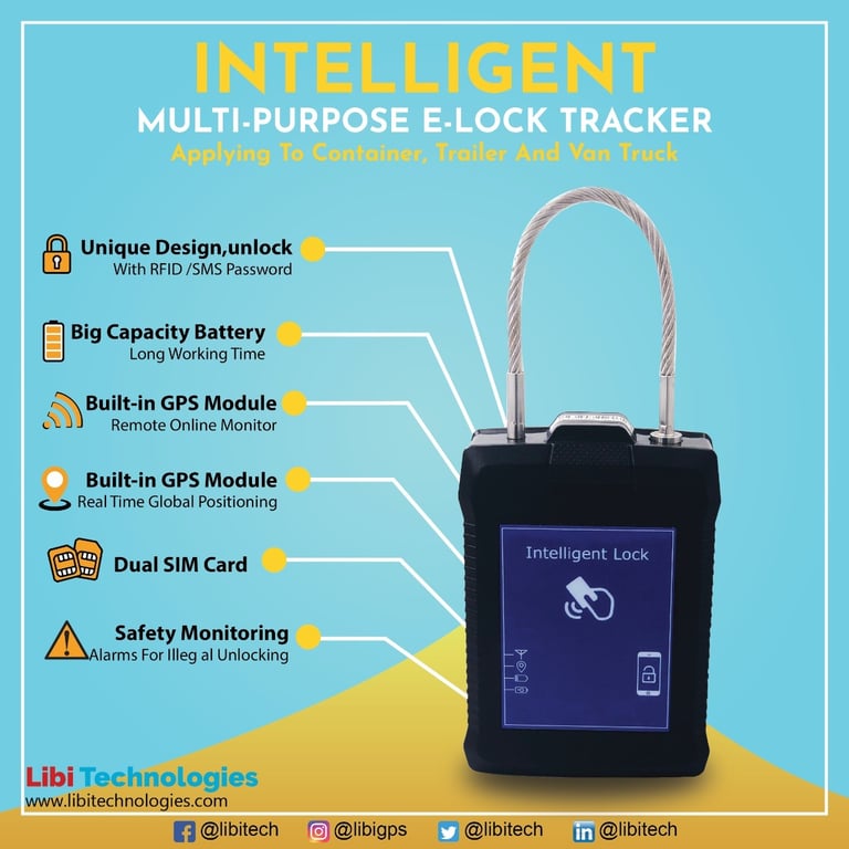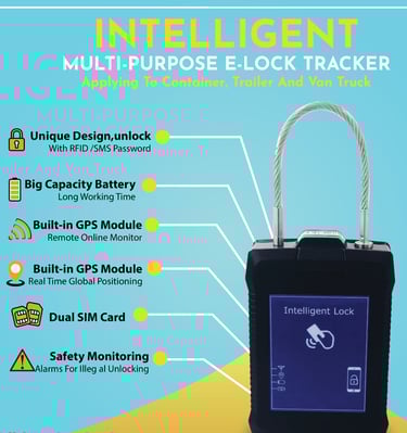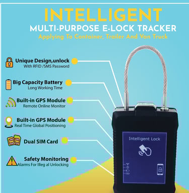 E-LOCK TRACKER built in GPS Module, Dual SIM Support can easily alert if tries to break or cut the Lock and while harsh move