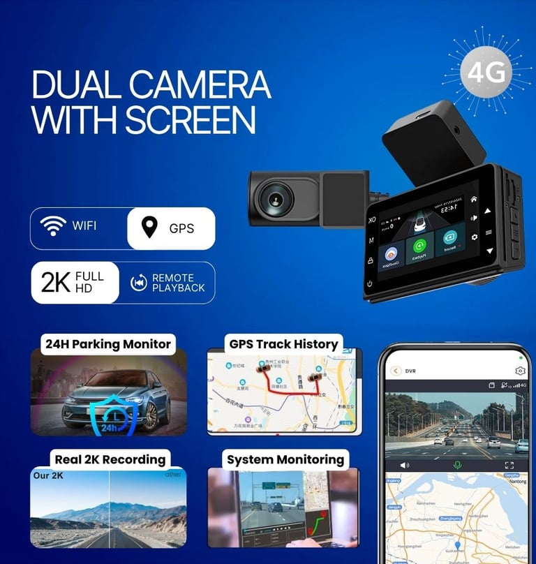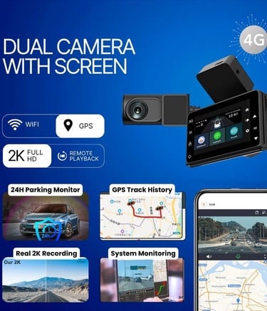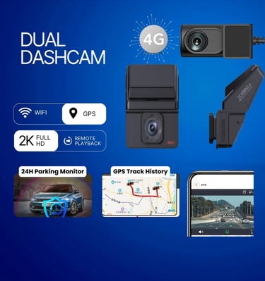 Dual DashCam Inbuilt With 4G GPS can Track, Record, Play, Alert & View the Vehicle Video in 360 Degrees. 24H Parking Monitor